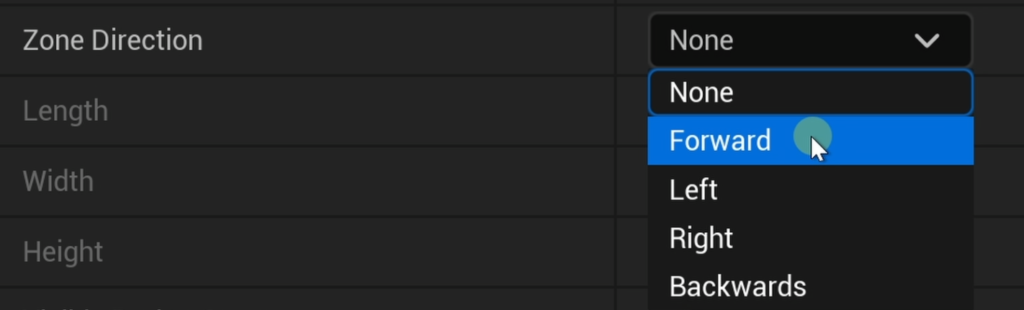 Zone Direction (ゾーンの方向):Forward (前) に設定。物理的な検知ゾーンを作成します。
