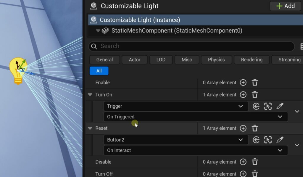 - 拡張性が低い: ライトを4個から20個に増やす場合、トリガーの複製、物理配置の調整、イベント紐づけ作業が膨大になります。