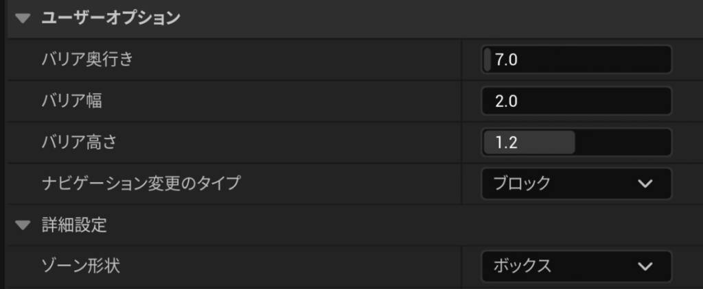 - バリア奥行き、バリア幅、バリア高さ: これらは仕掛けの大きさを調整するための項目です。数値を変更することで、ブロックしたいエリアのサイズを自由に設定できます。