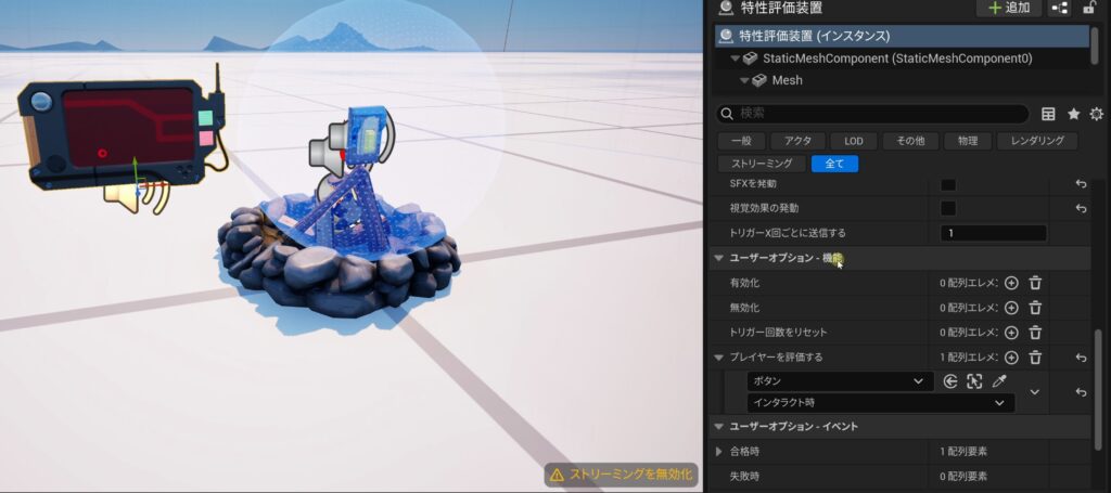 これにより、プレイヤーがボタンをインタラクトした際に、特性評価装置がプレイヤーの評価を行います。
