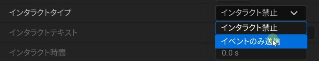 - 「インタラクトタイプ」を「インタラクト禁止」から「イベントのみ送信」に変更します。