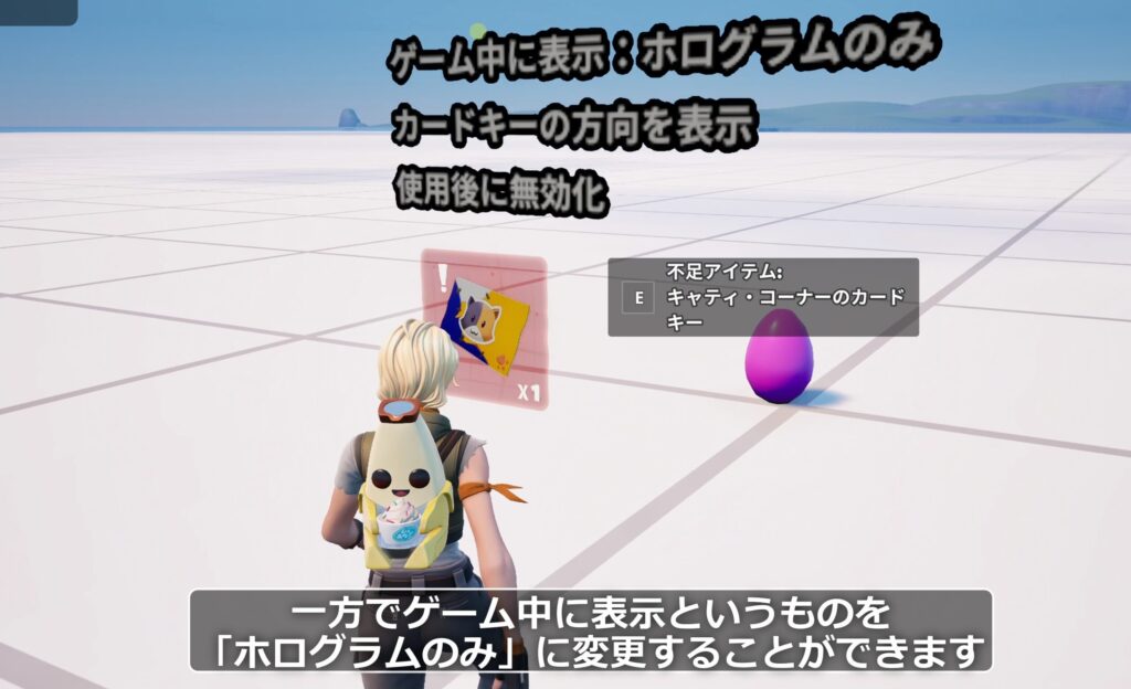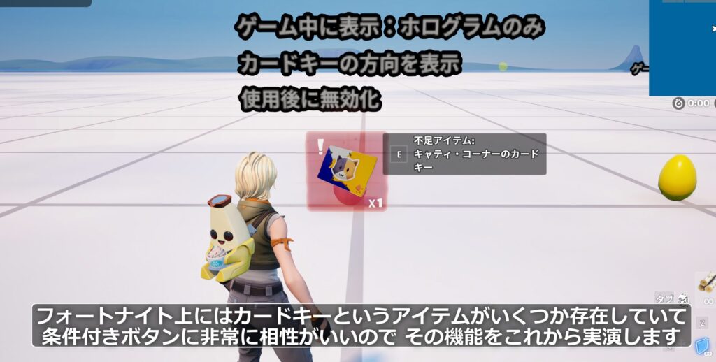 条件付きボタンは、フォートナイトに存在する「カードキー」系のアイテムと非常に相性が良い便利な機能を持っています。