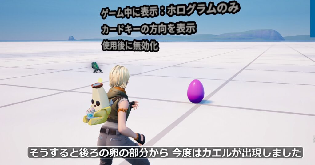 実演では、カードキーを使ってカエルを出現させた後、ボタンのホログラムが消えて無効化されました。