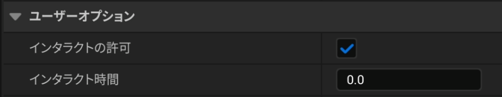 - インタラクト時間:ボタンを起動するまでの長押し時間を設定します(0秒なら瞬時に起動)。押し間違いを防ぎたい重要な場面では、1秒などに設定すると良いでしょう。