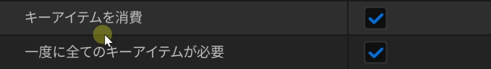 2つ目、3つ目のアイテムも同様に、アイテムの指定と数量の指定(「2つ目のキーアイテムが必要」など)を行います。