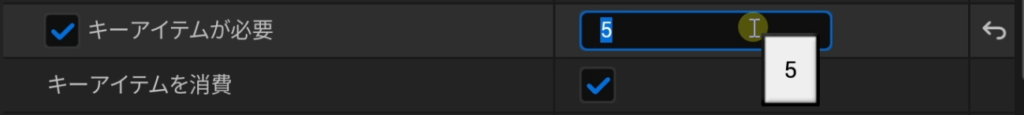 「キーアイテムが必要」のチェックボックスをオンにし、必要な数量(例:5)を入力します。