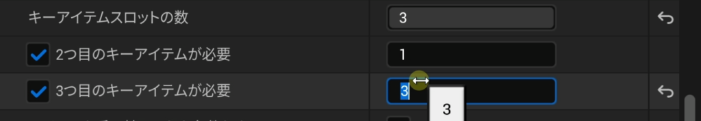 「キーアイテムのスロットの数」をデフォルトの1から変更することで、最大3種類まで必要なアイテムを設定できます。