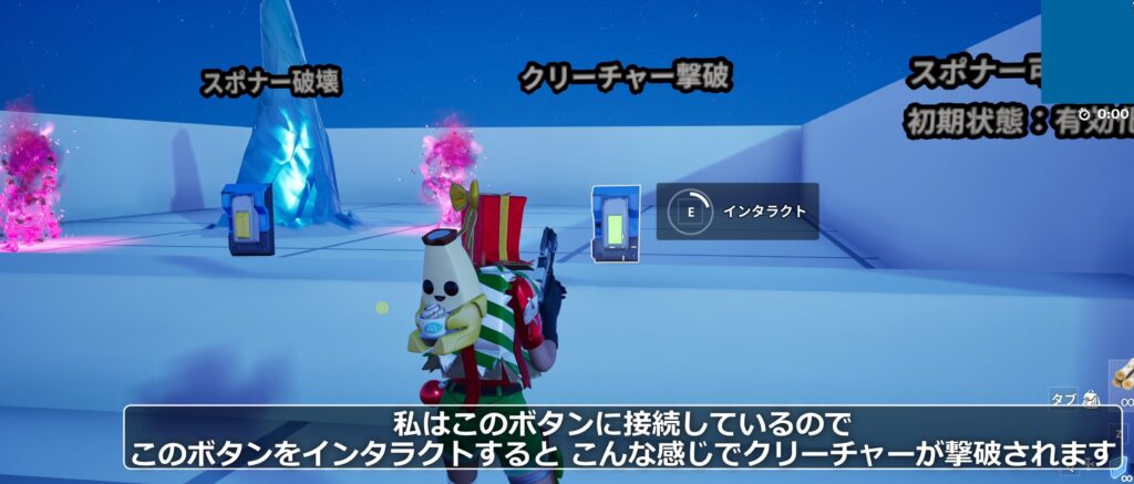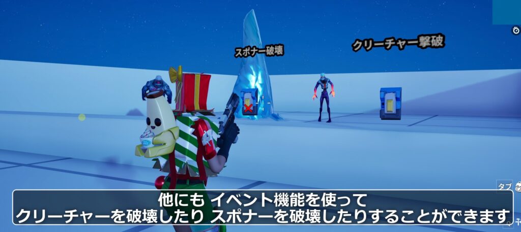 プレイヤーが直接攻撃する以外にも、ボタンなどのイベント機能を使ってスポナーやクリーチャーを操作できます。