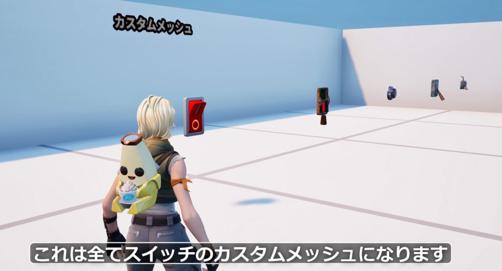 スイッチの仕掛けは、「カスタムメッシュ」機能によって見た目を自由に変更できます。 動画では、以下のようなメッシュを紹介しています。