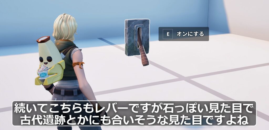 スイッチの仕掛けは、一言でいうと「状態を切り替えることができる仕掛け」です。プレイヤーがインタラクト(操作)できる物理的なスイッチとして使用でき、他の仕掛けと組み合わせてドアを開閉したり、照明をつけたり消したりすることができます。