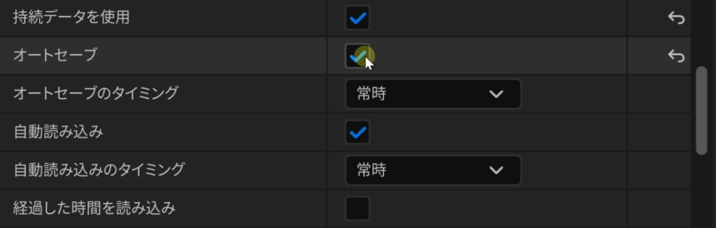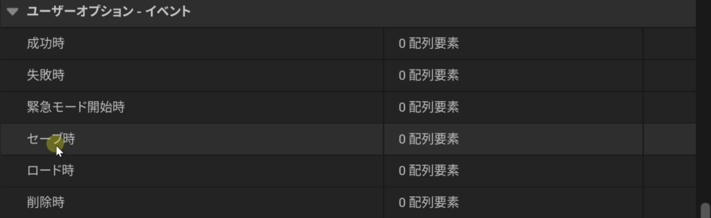 持続データを使用をTrueにすると、セーブ機能に関する詳細設定が表示されます。